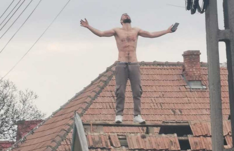 tanar urcat pe acoperis